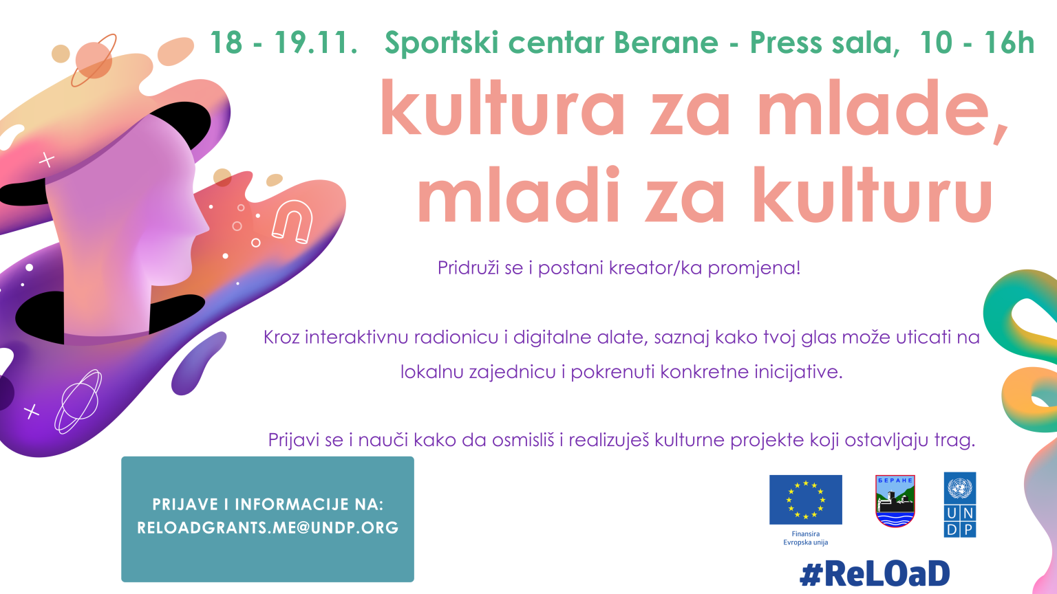 Prijave su otvorene do 14. novembra. Zainteresovani mogu poslati svoje ime i prezime, datum rođenja, grad i kontakt podatke na reloadgrants.me@undp.org.
