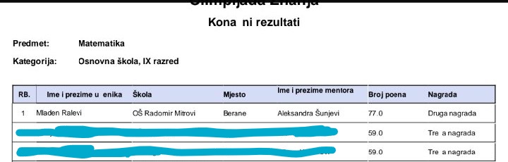 Na nedavno održanoj Olimpijadi znanja, održanoj u zgradi tehničkih fakulteta u Podgorici, 11. maja, školu “Radomir Mitrović” je iz oblasti matematike predstavljao Mladen Ralević, učenik devetog razreda.