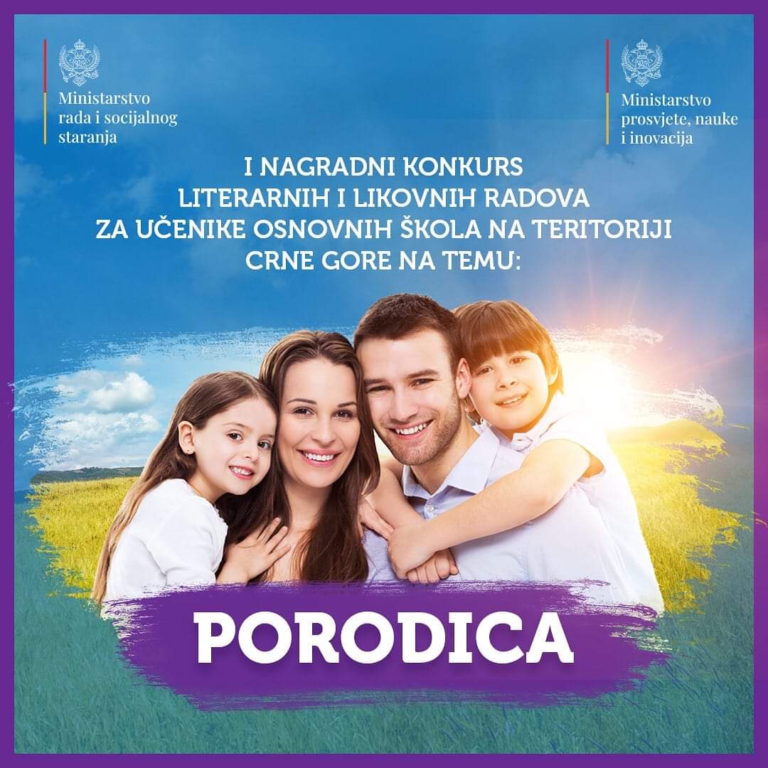 Ministarstvo prosvjete, nauke i inovacija raspisalo je konkurs za učenike/ce od prvog do devetog razreda osnovnih škola na teritoriji Crne Gore, na temu „Porodica“.