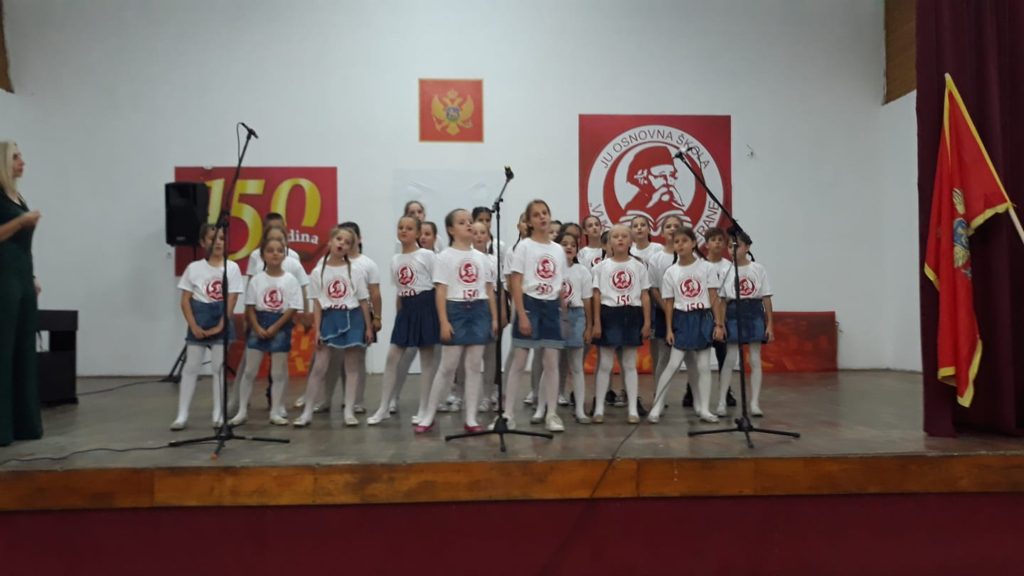 Program je nastavljen uz pjesmu “Goro moja” u izvedbi ženske klape “O’ dive bell canto”. Kako se škola mijenjala i šta je postala za 150 godina prikazano je prezentaciom “Vrijeme prolazi, a ja trajem”, koju su pripremili učenici i nastavnici ove škole.