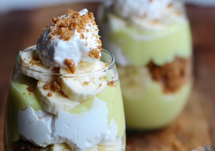 slatku pavlaku. Nakon banana, u čašu dodajte slatku pavlaku i pospite je orasima.