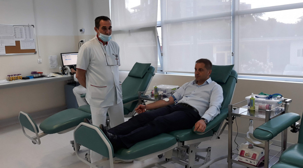 Ministar prosvjete Damir Šehović i njegovi saradnici donirali su danas krv u okviru kampanje “Ministri daju krv”.