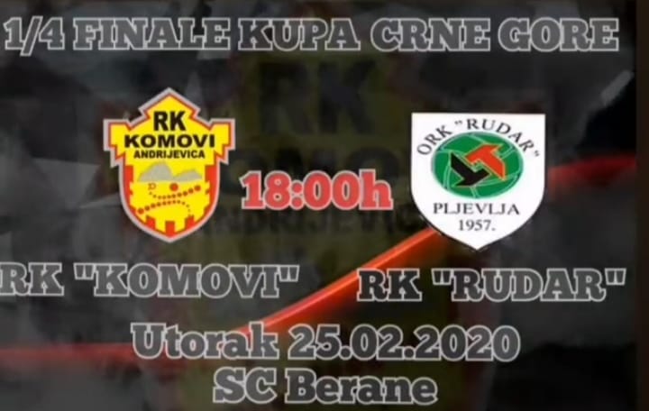 Utakmica 1/4 finala Kupa Crne Gore odigraće se sjutra u Sportskom Centru Berane između ekipa RK “Komovi” – RK “Rudar” sa početkom u 18 časova.