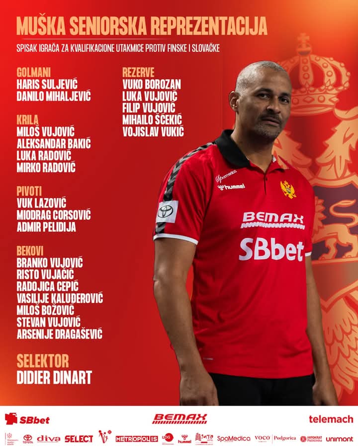 Selektor Didije Dinar objavio je spisak od 16 igrača, dok je pet imena na spisku rezervnih igrača.