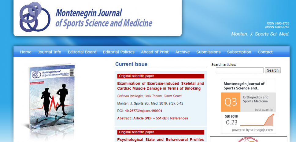 Novi broj crnogorskog časopisa za sportsku nauku i medicinu Montenegrin Journal of Sports Science and Medicine (MJSSM), jedinog časopisa u Crnoj Gori koji je indeksiran u dvije svjetske baze podataka, Web of Science i Scopus, već je spreman i izlazi iz štampe u septembru.