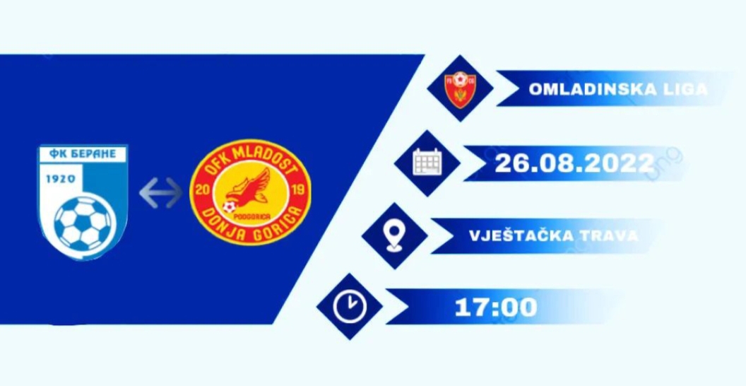 U drugom kolu omladinske lige FK Berane će ugostiti FK Mladost Dg. Meč je zakazan za 26. avgust u 17 časova na mjestu Vještačka trava. Post navigation Udruženje roditelji: Za školu opremljeno 428 djece, omogućeno i doniranje onlajn Rožaje: Rijeke zatrpane smećem