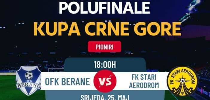 Revanš utakmica polufinala Kupa Crne Gore, između pionira OFK “Berane” i FK “Stari aerodrom”, biće odigrana sjutra (25. maja), u 18 časova, na pomoćnom terenu Gradskog stadiona u Beranama.