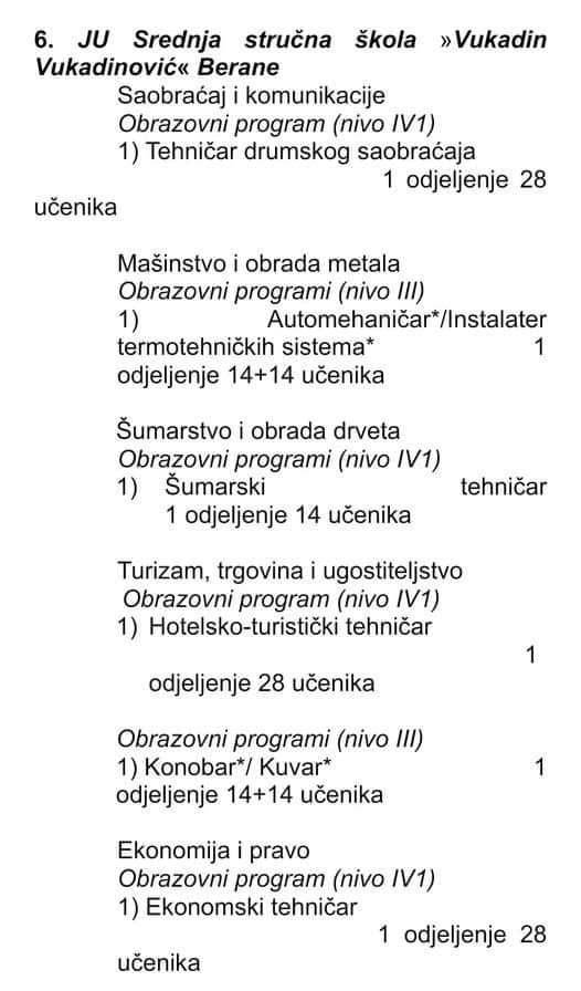 Srednja stručna škola “Vukadin Vukadinović” raspisuje konkurs za upis u prvi razred.