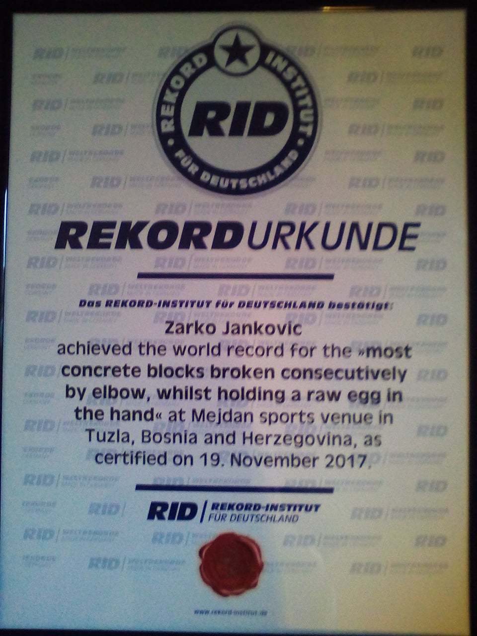 U septembru 2016. godine u sklopu Memorijalnig turnira i Svjetskog kyokushinkai takmičenja organizovao sam i Dan Svjetskih rekorda gdje sam sa trona skinuo Amerikanca i postao prvi rekorder u disciplini Tamishivari (Tehnika lomljenja). U martu 2017. gubim rekord tj rekord mi obara Austijanac u Bosni i Hercegovini postavivši rekord od 78 polomljenih plata za 21 sekundu. U Novembru 2017. dobio sam poziv da učustvujem na danu Ginisovih i Svjetskih rekorda u Tuzli i prihvatio sam poziv gdje sam i vratio rekord u svoje ruke polomivši 82 plate za 9,74 sekunde.