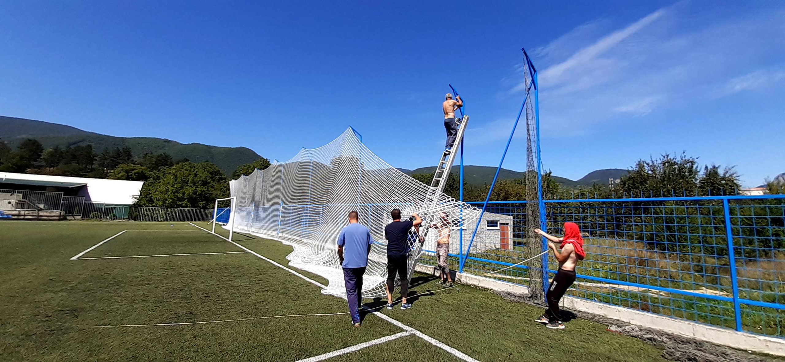 U saradnji sa Sekretarijatom za Sport, kulturu, mlade i saradnju sa NVO Opštine Berane i Fudbalskog saveza Crne Gore danas su radnici Sportskog Centra postavili nove zastitne mreže iza golova na pomoćnom terenu sa vještačkom travom, a u narednim danima će se postaviti i na pomoćnom terenu sa prirodnom travom.