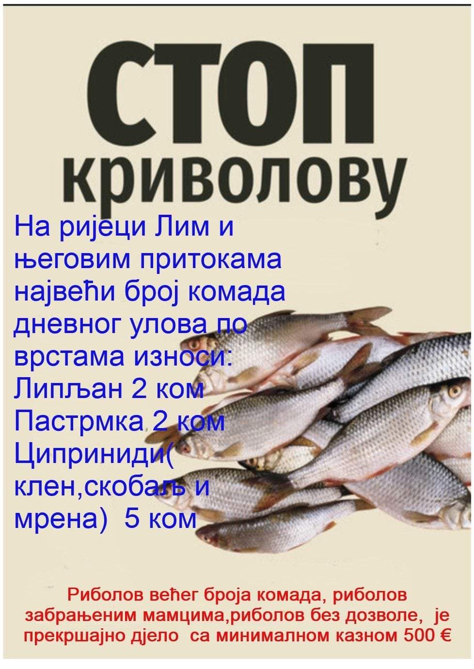 U sklopu suzbijanja nelegalnog ribolova na rijeci Limu i pritokama Sportsko ribolovni Klub Lim u saradnji sa Inspektorima i Upravom policije vršiće pojačanu kontrolu ribolovnih Voda od 02.07.2022 do 30.07.2022 godine.