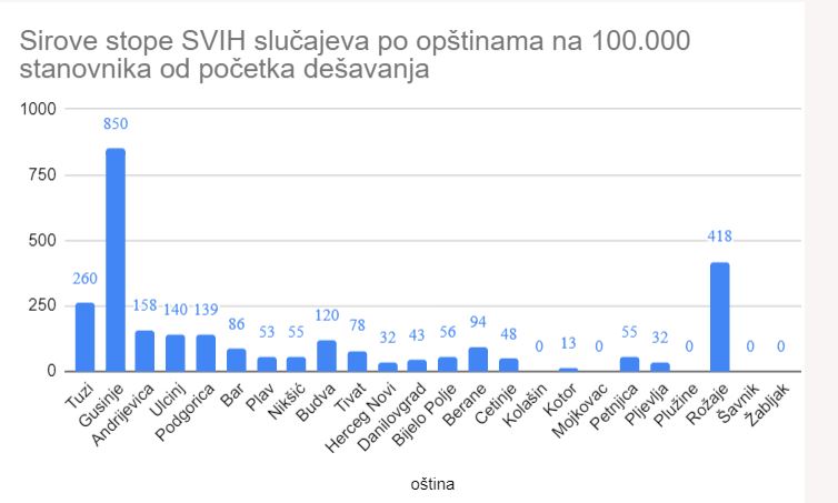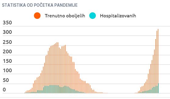 Od početka epidemije, odnosno od pojave prvog slučaja u Crnoj Gori do danas, ukupan broj oboljelih je 663, trenutno oboljelih je 335, hospitalizovane su 54 osobe, preminulo ih je 13, oporavilo se 315, a pod nadzorom je trenutno 2084 ljudi.