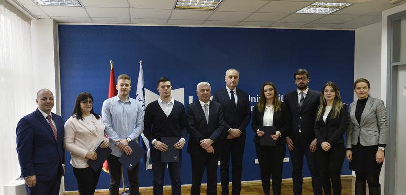 Rektor Univerziteta (UCG) Danilo Nikolić i predsjednik Privredne komore(PKCG) Vlastimir Golubović, uručili su danas nagrade studentima za tri najbolje start up ideje.
