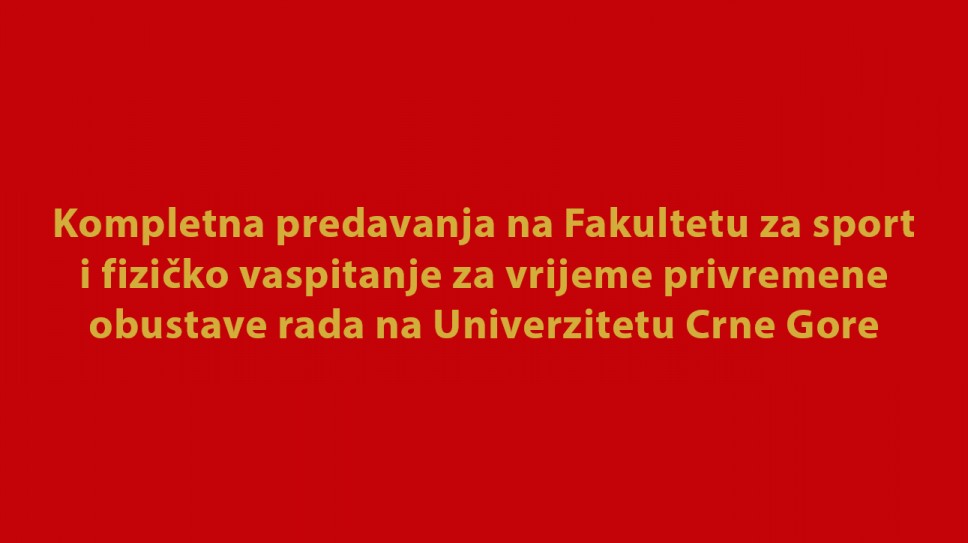 Iz Fakulteta za sport i fizičko vaspitanje obavještavaju da se kompletna predavanja za vrijeme obustave rada na Univerzitetu Crne Gore mogu pronaći na veb stranici: