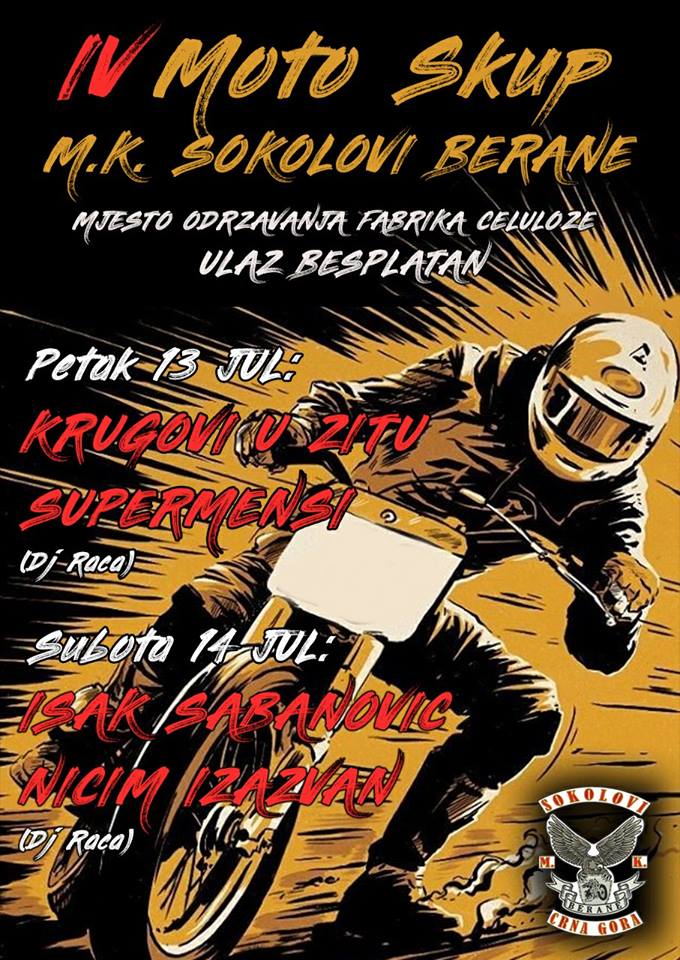 “Moto skup”, u organizaciji “Sokolova” održan je 13. i 14. jula na prostoru bivše Fabrike celuloze i papira, pod pokroviteljstvom Opštine Berane. Na ovom događaju je počela i prva akcija ovog tipa. A Marinko Barjaktarović je istakao i da je njegova nevladina organizacija dobila i zahvalnicu od “Sokolova” za doprinos u toku održavanja ovog skupa.