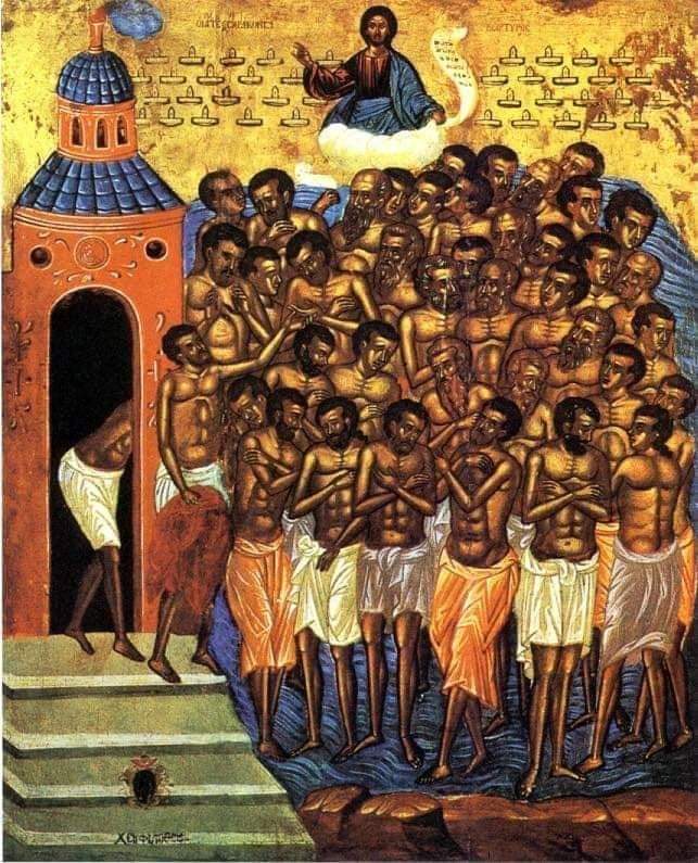 Na ikoni Sveti četrdeset mučenika prikazuju se goli, kako stoje u vodi, a nad glavama im svijetle mučenički vijenci