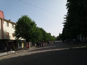 Trenutno u našem gradu vlada topao i sunčan dan. Građani ovaj dan provode napolju uživajući u lijepom vremenu. Neki šetaju, a neki uživaju u baštama svojih dvorišta. Djeca se igraju, voze bicikla, rolere i takođe se raduju suncu. Trenutna temperatura iznosi 20 stepeni, a takav je i subjektivni osjećaj.