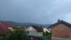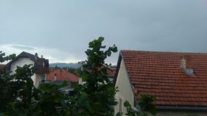 U našem gradu kišovito vrijeme sa intenzivnom grmljavinom. Temperatura je 26 stepeni.