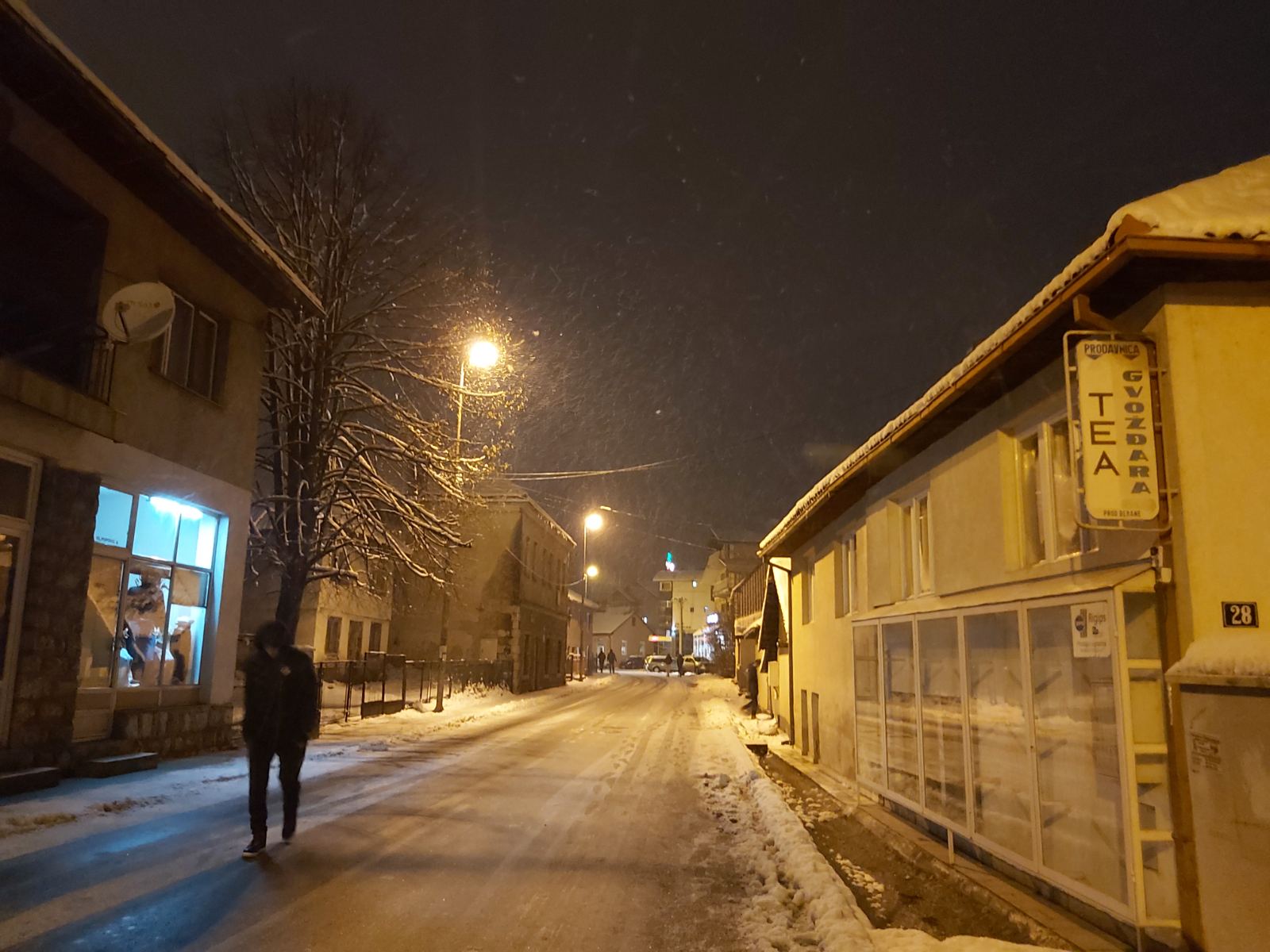 Snijeg i hladno vrijeme ove večeri u našem gradu. Temperatura vazduha trenutno iznosi -4 stepena.