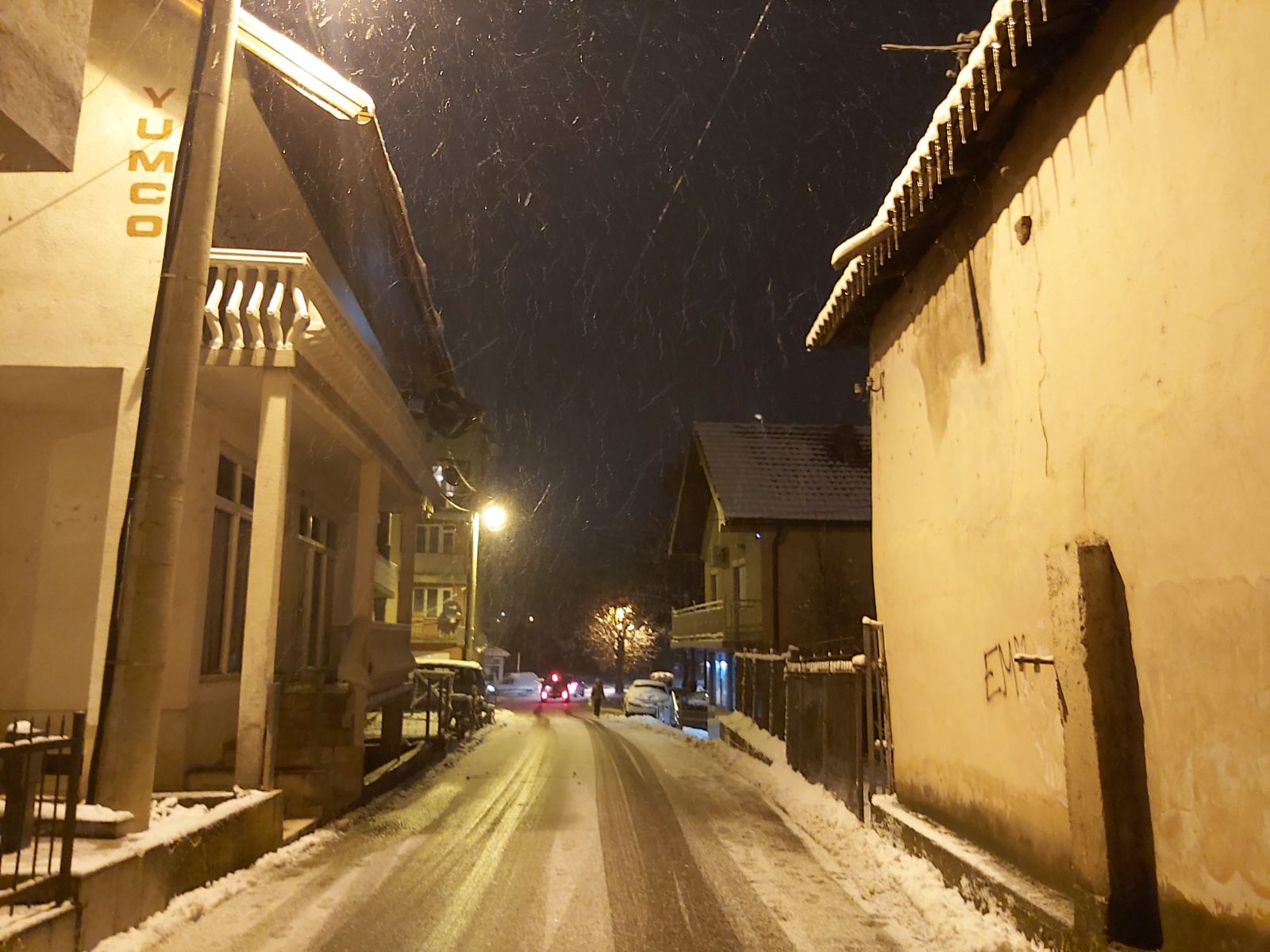 Snijeg i hladno vrijeme ove večeri u našem gradu. Temperatura vazduha trenutno iznosi -4 stepena.