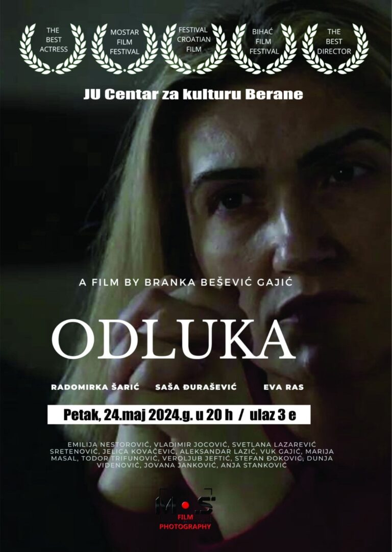Igrani film „Odluka“ biće prikazan u bioskopu Centra za kulturu u petak, 24. maja 2024. godine sa početkom od 20 časova.