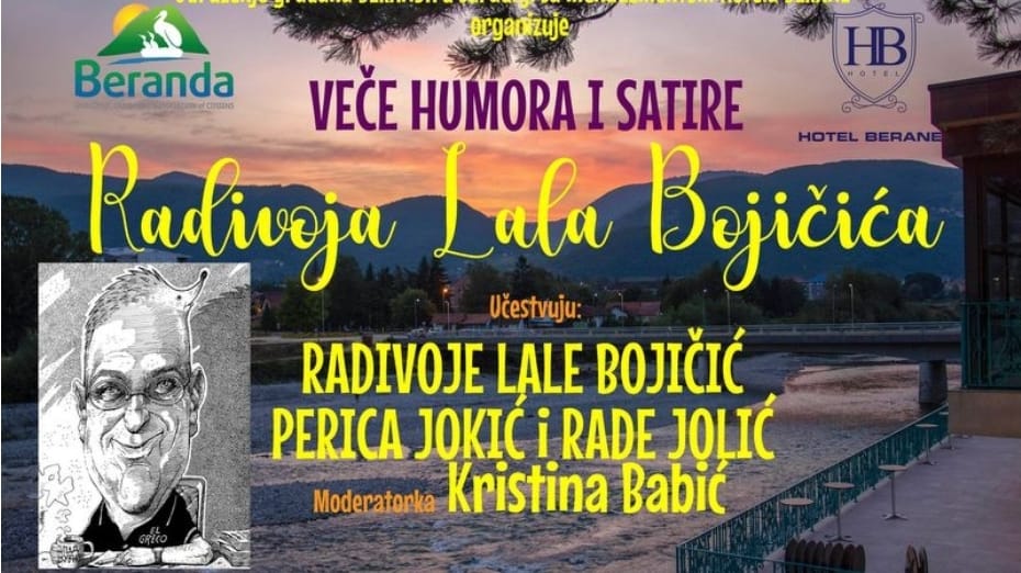 Sjutra se u Hotelu „Berane“ održava Veče humora i satire Radivoja Lale Bojičića, koje organizuju NVU „Beranda“ i menadžment istoimenog hotela.