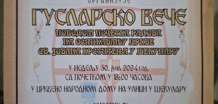 Parohija trepačko-šekularska i Crkveni odbor Šekular organizuju guslarsko veče povodom početka radova na oslikavanju crkve Svetog Jovana Krstitelja u Šekularu.