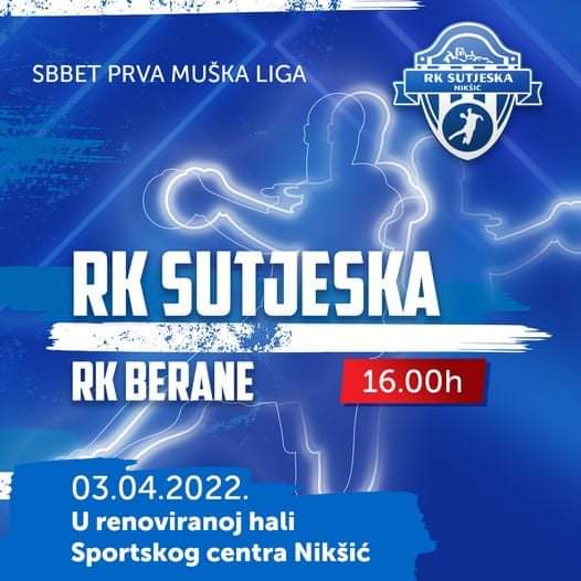 Rukometni klub Sutjeska sastaje se u renoviranoj dvorani Sportskog centra u Nikšiću u nedelju 3. aprila u 16 časova sa ekipom rukometnog kluba Berane u okviru Prve SBBET muške rukometne lige.