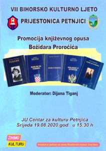 U okviru VII “Bihorskog kulturnog ljeta”, pod nazivom Prijestonica Petnjici, biće održana promocija književnog opusa Božidara Proričića, kao i izložba slika ”Jezero u srcu” Predraga Gazivode.