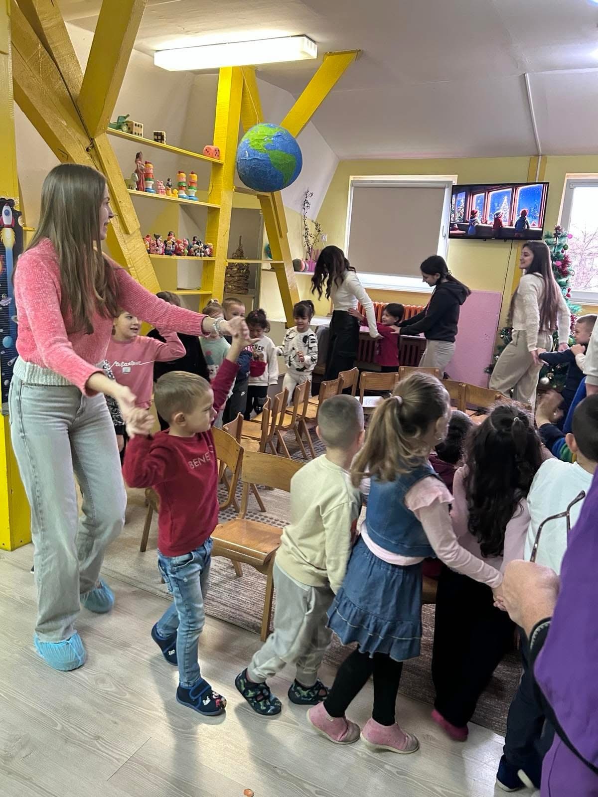 Volonteri su, zajedno sa zaposlenima, realizovali planirane aktivnosti. Jedna grupa je ukrašavala hol slikama sa novogodišnjim motivima, druga grupa je čitala djeci bajke, dok je treća grupa kroz igru sa djecom obilježila ovaj poseban dan.