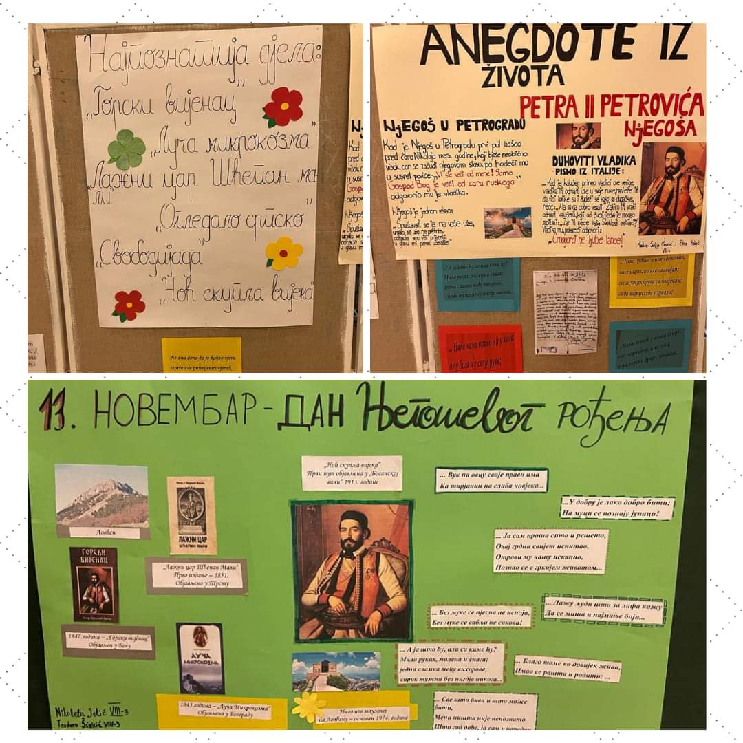 Povodom Njegoševog dana, crnogorskog praznika kulture, učenici OŠ “Vuk Karadžić” su uredili panoe posvećene velikom pjesniku i filozofu u holu Škole.