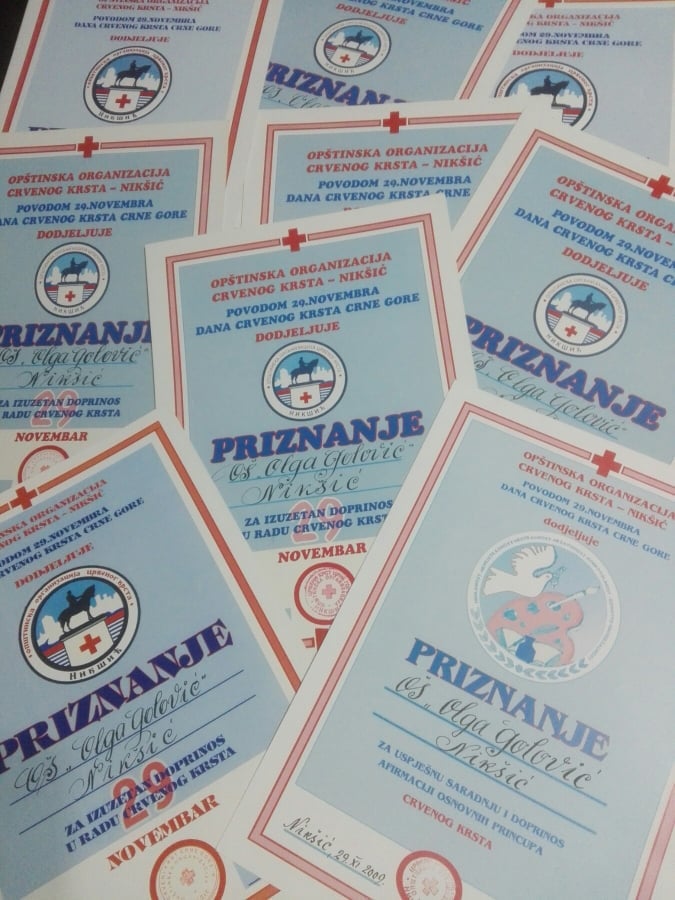 “Zbog dugogodišnje saradnje sa izuzetnim HUMANISTIMA koji rade i djeluju godinama pružajući pomoć svima koji su u nevolji i nemaštini. Čak i u danima, izuzetno teškim za vrijeme KORONE djelovali su volonteri na najbolji način. Nijesu izostali obilasci najudaljenijih mjesta gdje je pomoć bila potrebna. Godinama, generacije koje rade pod mojim nadzorom učim šta ta riječ znači -HUMANOST. Hvala Ani, Midu, Goranu kohi širom otvaraju vrata Crvenog Krsta. Hvala, nedavno preminulom Vitomiru-Vitu Lekić koji je bio veliki HUMANISTA koji je takođe dao svoj veliki doprinos u dugogodišnjim aktivnostima Crvenog krsta”, kazala nam je Milojka Mica Pejović, likovni pedagog škole.