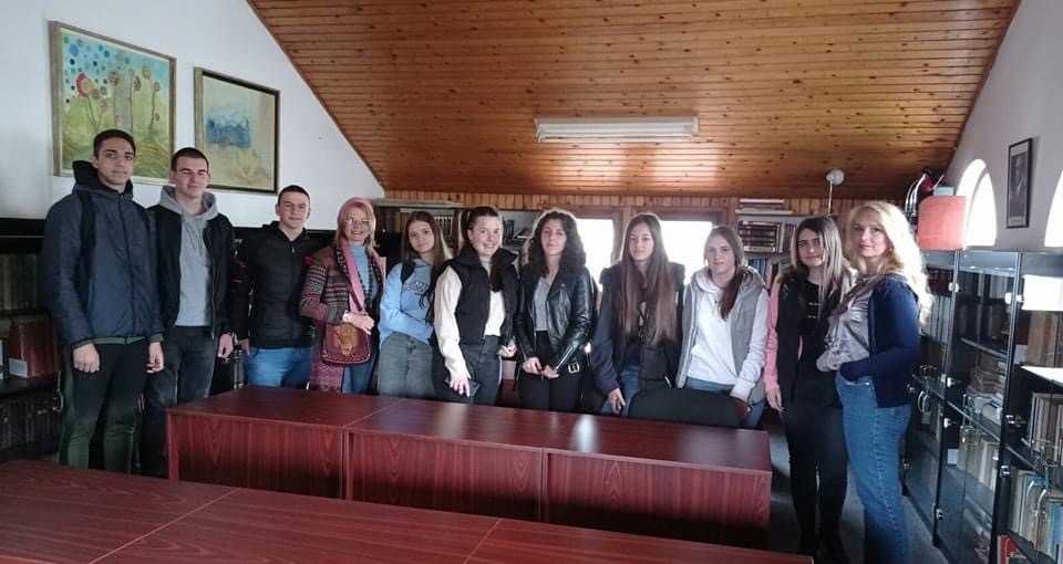 Bibliotekarka Marija Iritano upoznala je učenike sa istorijatom biblioteke, opremljenošću, čitaonicom, knjižnim fondom kojim biblioteka raspolaže, prostorijama u kojima se održavaju književne večeri, literarni konkursi, promocije, susreti učenika.