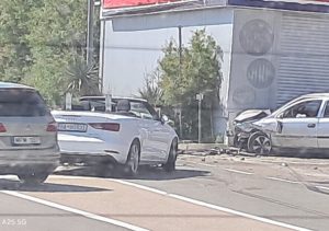 Prema dostupnim fotografijama, u nezgodi su učestvovala dva vozila, a jedno je nakon jakog kontakta udarilo u objekat obližnje benzinske pumpe.