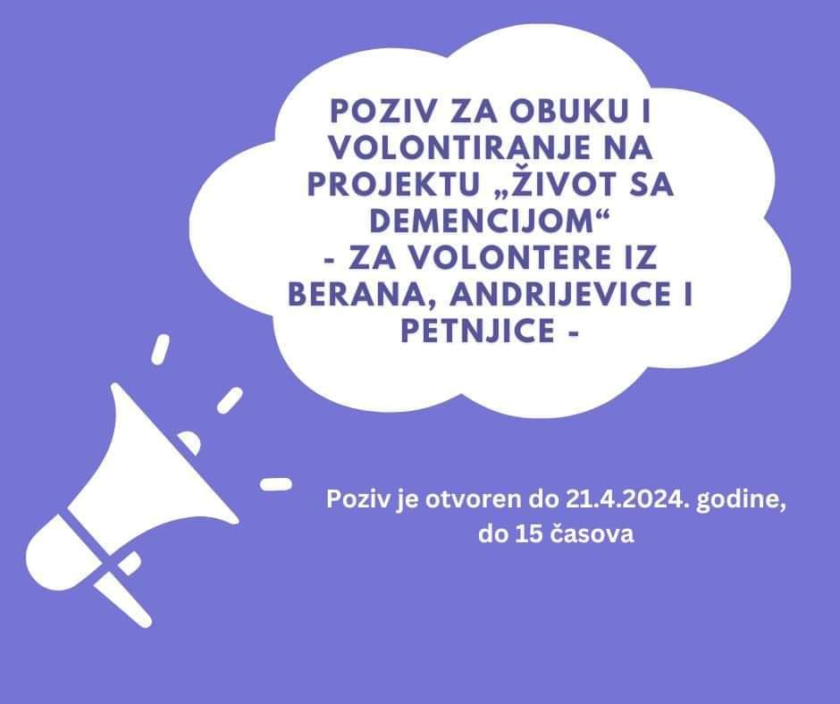Udruženje “Impuls” uputilo je poziv zainteresovanima za obuku i volontiranje na projektu “Život sa demencijom”, za volontere iz Berana, Andrijevice i Petnjice.