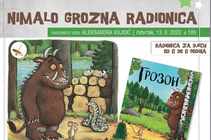 Radionica će biti posvećena knjizi Grozon – priči u stihovima autorke Džulije Donaldson koja govori o dovitljivom mišu. Šetajući kroz „gust i taman gaj” miš izmišlja strašno šumsko čudovište – Grozona – i na taj način plaši svaku životinju koja bi da ga pojede. Preokret u priči nastaje kada se ustanovi da Grozon i nije baš sasvim izmišljeno biće.
