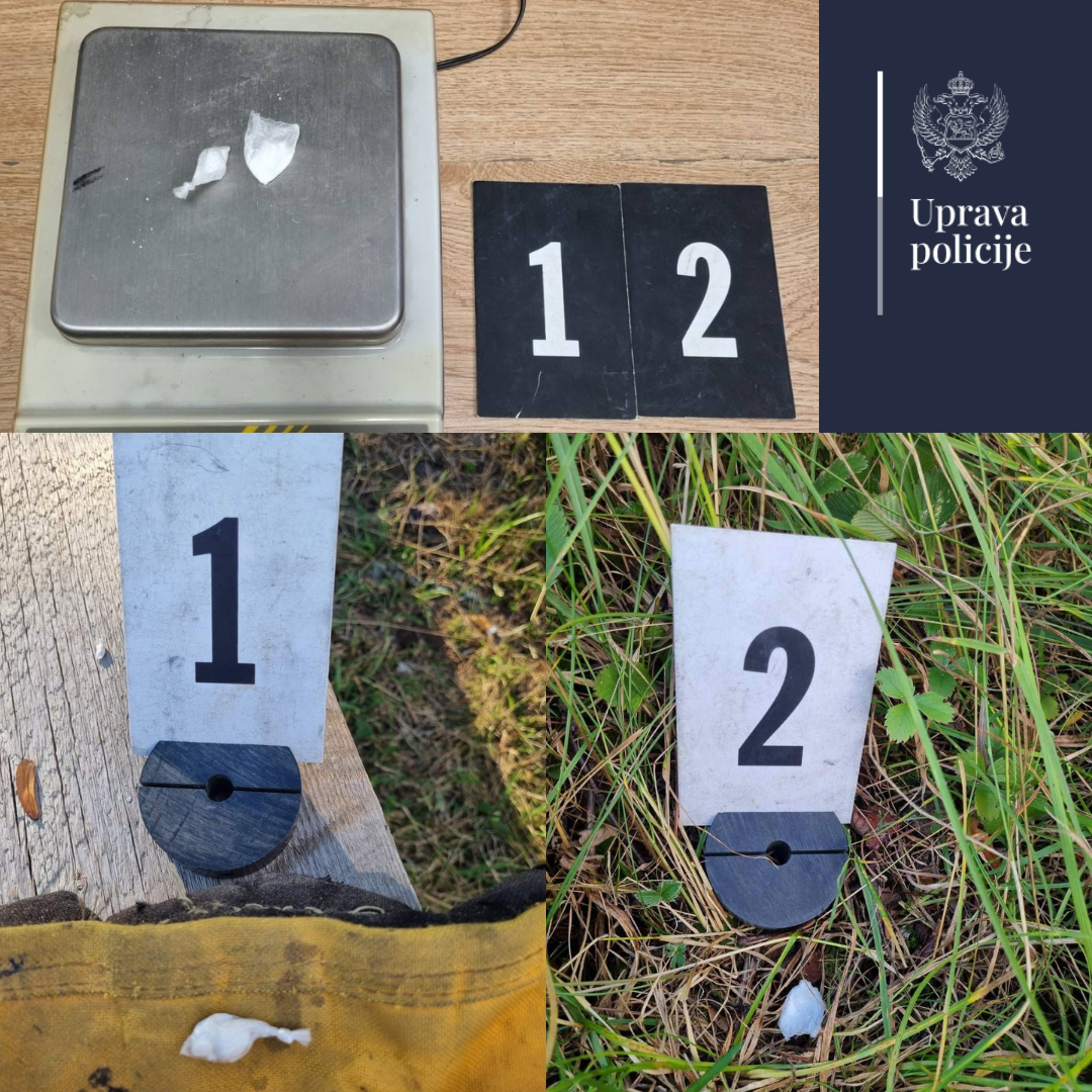 Naime, policija je kontrolisala S.G. i još jedno lice, oba iz Rožaja, kada je S.G. od sebe odbacio jedno manje pakovanje sa praškastom materijom bijele boje za koju se sumnja da je opojna droga kokain. Ovo pakovanje je pretragom terena policija pronašla, dok je u rancu ovog lica pronađeno još jedno manje pakovanje sa sadržajem ove materije.