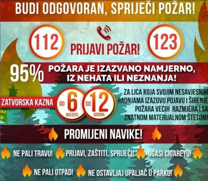 “Uprava za šume već je uspostavila neprekidna dežurstva, a da su brojevi telefona dežurnih službenika po smjenama i danima istaknuti na poslovnim prostorijama svake područne jedinice, na koje građani mogu prijaviti nastanak požara”, saopštili su oni i pozvali građane da budu odgovorni.