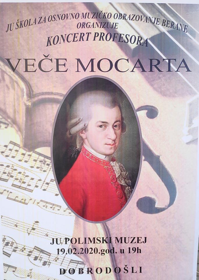 JU Škola za muzičko obrazovanje Berane organizuje koncert profesora pod nazivom “Veče Mocarta”.