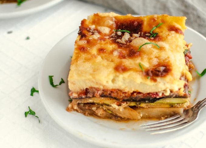 Tikvice oprati, oljuštiti i naseći na kolutove ili listove, posoliti ih i ostaviti da odstoje i puste vodu, oprati ih pod mlazom hladne vode. Pirinač skuvati i ocediti od vode. Vatrostalnu posudu podmazati sa vrlo malo ulja, staviti red tikvica, preko tikvica pola povrća, preko povrća naseckan peršun i narendani sir, opet tikvice pa ostatak povrća, peršuna i narendanog sira. Na kraju završiti sa tikvicama. Peći u rerni oko 20 minuta na 180 stepeni. Umutiti jaja, dodati pavlaku i malo peršuna i time preliti musaku, staviti malo vegete odozgo i vratiti u rernu još 5 minuta da se zapeče. Prijatno!