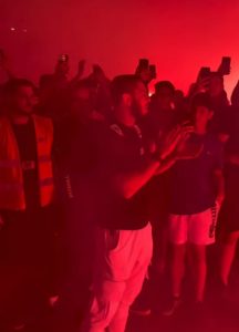 Pjesma, aplauzi i skandiranje “Miloše, Miloše” odzvanjali su terminalom, dok je Janičić sa osmjehom izašao među svoje ljude.