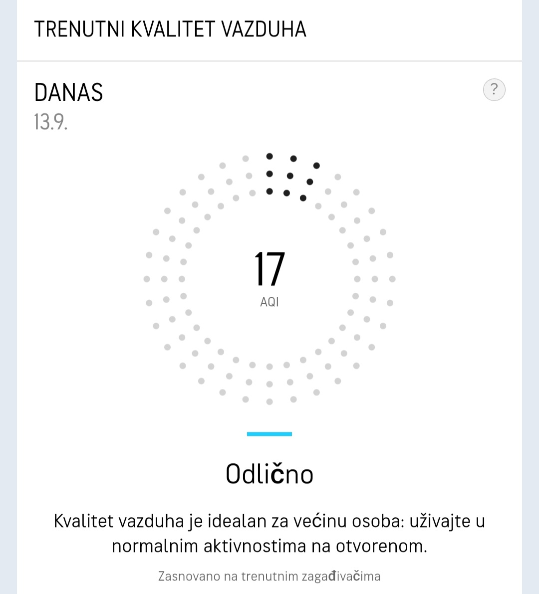 Kvalitet vazduha je idealan za većinu osoba: uživajte u normalnim aktivnostima na otvorenom.