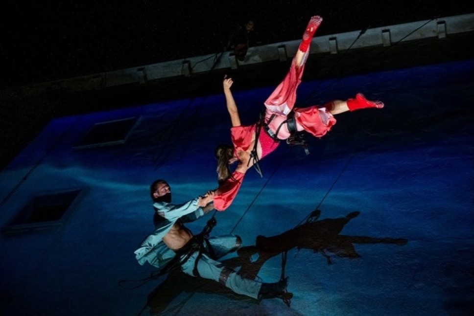 Plesački ansambl “Il Posto” iz Venecije donosi spektakularan prikaz umjetnosti u pokretu gdje umjetnici izvode vertikalni ples hodajući nestvarno po zidovima zgrade. Plesači se spuštaju užadima sa krova, dok publika prati njihovo graciozno lelujanje u vazduhu, uz specijalne svjetlosne efekte.
