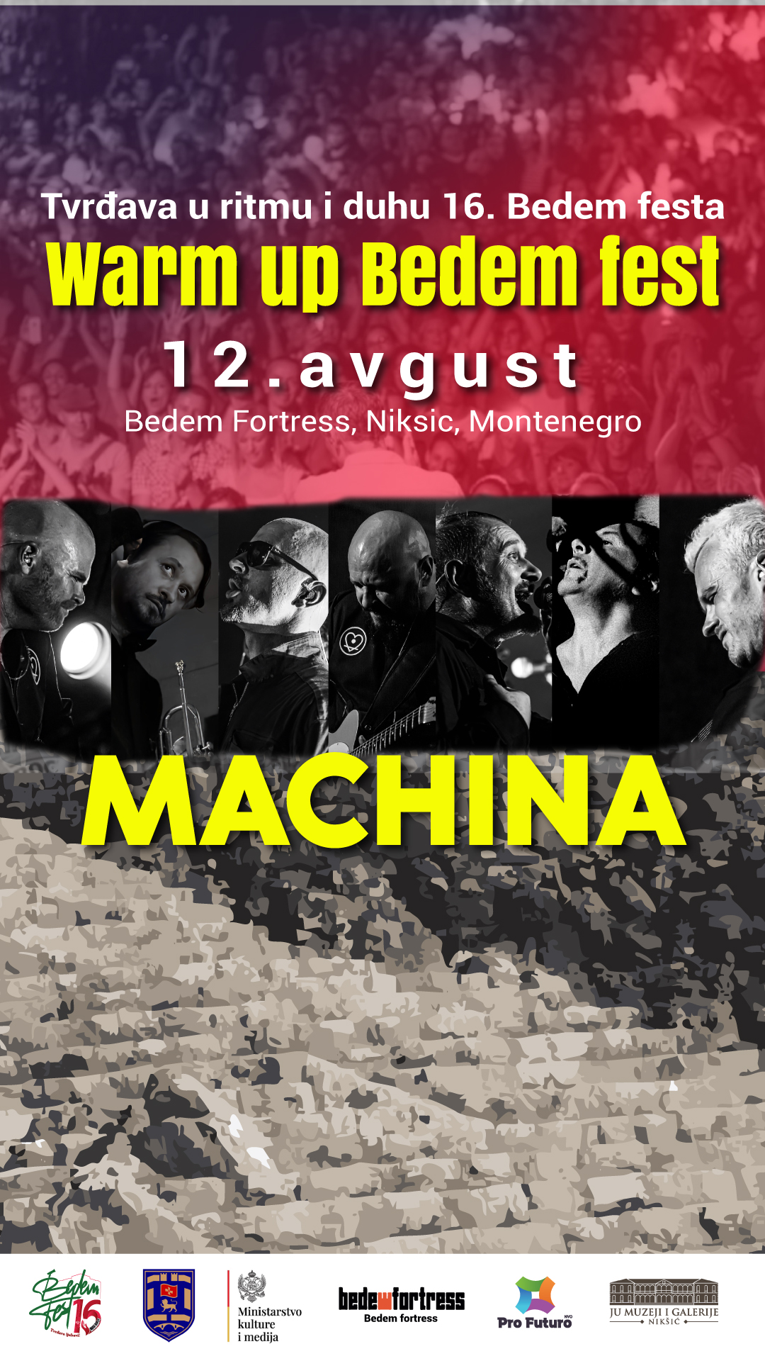 “Bedem fest nastavlja sa iznenađenjima, ovaj put nudeći publici privilegiju da uživa u ekstra eksluzivnom koncertu kolektiva Machina. 12.avgusta na maloj sceni ljetnje pozornice na tvrđavi, kao segment projekta “Tvrđava u ritmu i duhu Bedem festa” koji je podržan od strane Ministarstva kulture i medija Crne Gore i predstavlja nastavak zagrijavanja za Bedem fest, u sklopu regionalne turneje Folk:tour, bend Machina će po prvi put u Crnoj Gori predstaviti svoj bogati stvaralački opus. Kolektiv Machina se vraća izvan digitalnog – u prostor između stvarnog i simboličkog”, najavljuje Petar Šundić.