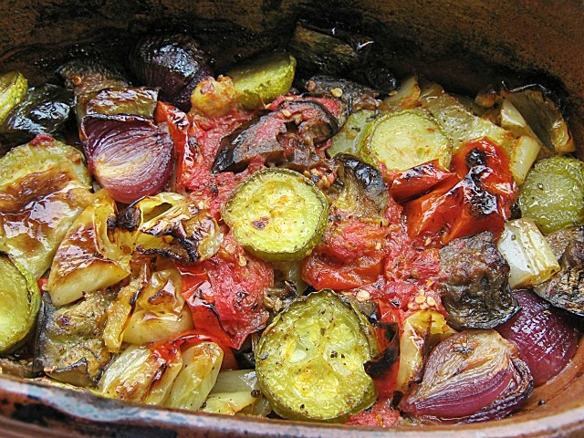Priprema: Isjeći paradajiz i patlidžan na kolutove, papriku na kriške, a crni luk na kolutove. Poređati povrće u okruglu tepsiju ili u vatrostalnu činiju i preliti sa malo ulja pa dodajti so i biber. Zapeći u rerni 15 minuta na 250 stepeni. Za to vrijeme umutiti 200 ml kisjele pavlake, jaja i mlijeko pa tu smjesu prelijte preko povrća i zapecite još malo.