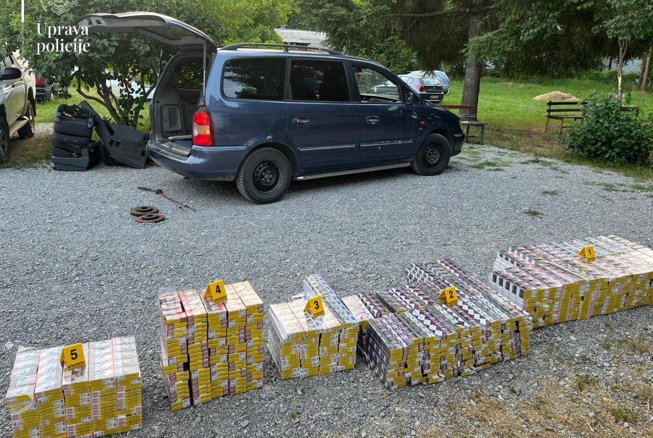 Crnogorska granična policija zaplijenila je veću količinu cigareta i rezanog duvana, vrijednosti oko 19 hiljada EUR, i procesuirala dvije osobe, saopšteno je iz Uprave policije.