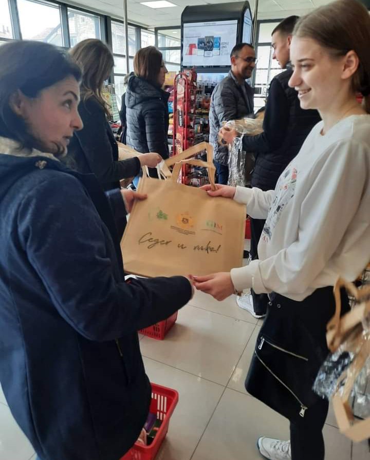 Projektom su realizovane dvije grupe aktivnosti. Prva se odnosila na nabavku i podjelu platnenih cegera kupcima u velikim marketima, u Beranama i Rožajama, koji su na sebi imali ekološku poruku, a iste su dijelili članovi ekoloških sekcija gimnazija u ovim gradovima.