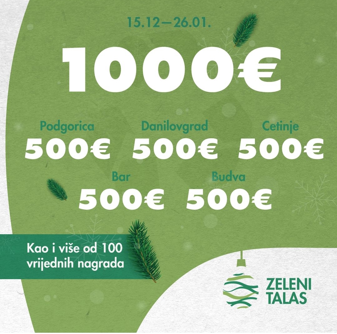 Pokret Zeleni talas do 26. januara organizuje najveću ekološku akciju u Crnoj Gori, gdje građani i građanke imaju priliku da kroz sakupljanje ambalažnog otpada osvoje novčane, ali i preko 100 drugih nagrada.