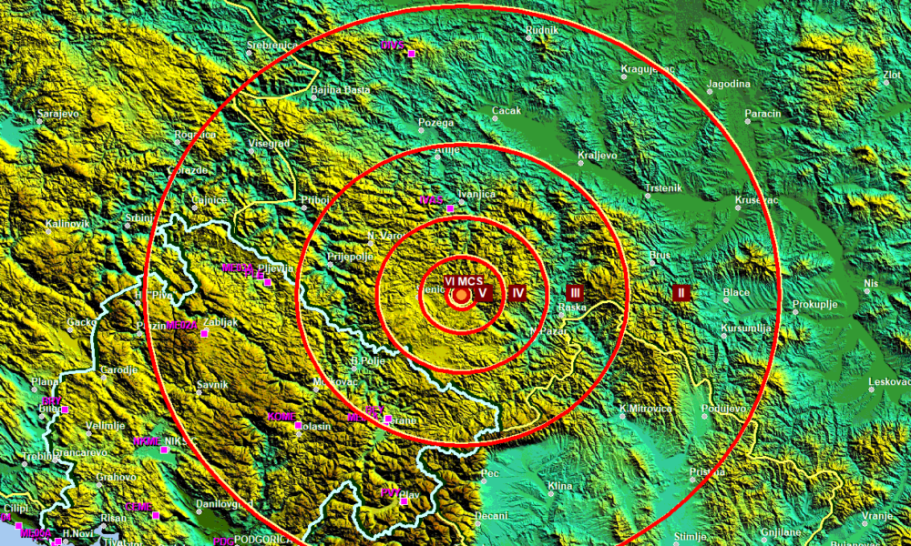 Sektor za seizmologiju Zavoda za hidrometeorologiju i seizmologiju (ZHMS) u 14.43 časova registrovao je zemljotres srednje jačine, sa epicentrom 15 kilometara istocno od Sjenice u Srbiji.