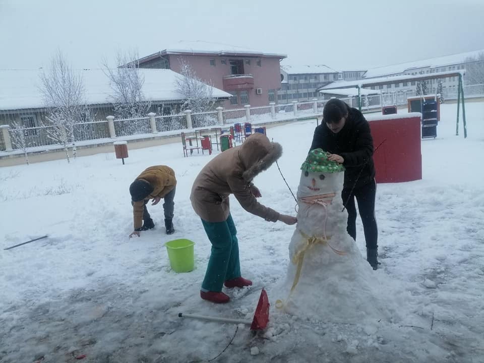 Djeca koja pohađaju Dnevnog centra za omladinu i djecu sa smetnjama i teškoćama u razvoju zajedno sa zaposlenimajuče su u dvorištu ove ustanovu napravili pravu zimsku čaroliju. Djeca su pravila Sneška Belića, igrala su se na snijegu I bila su presrećna.